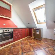 Poziom I : przedpokój, salon, sypialnia, balkon, kuchnia, łazienka.