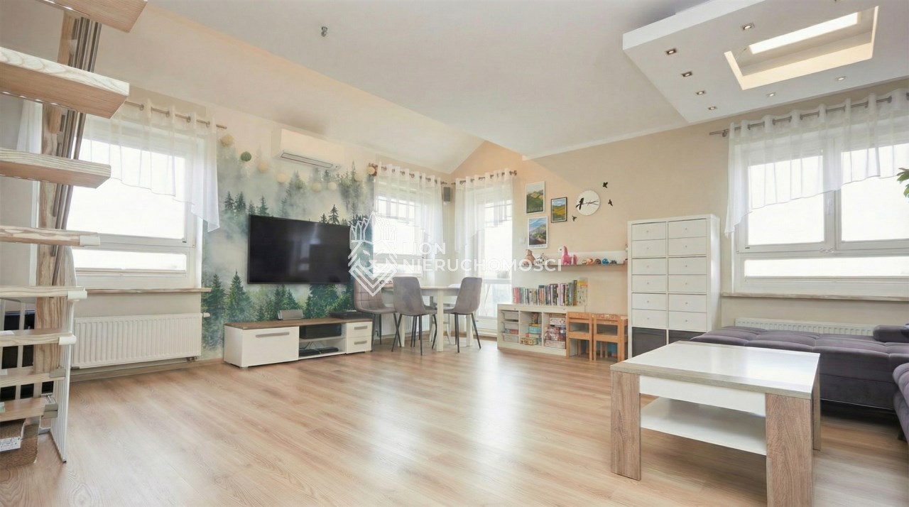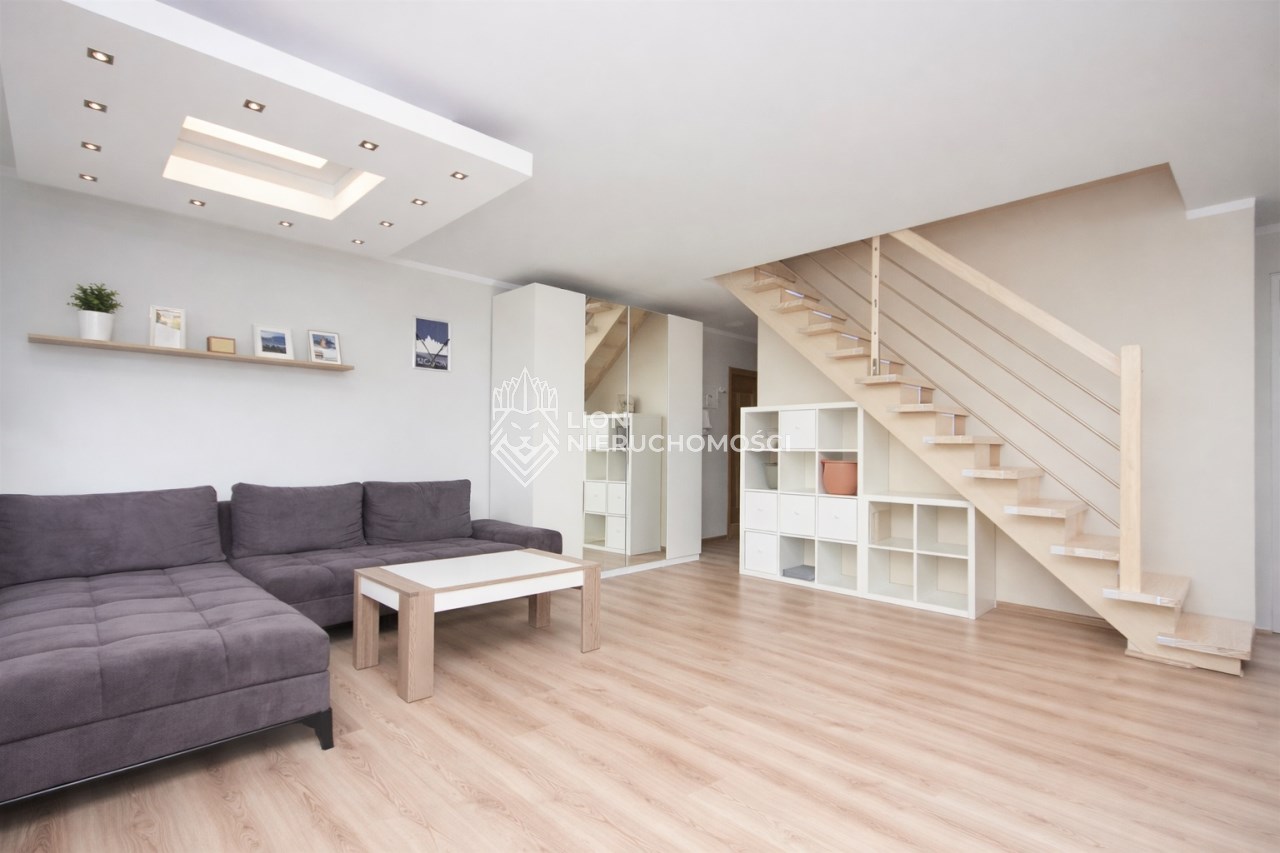 Mieszkanie jest bardzo jasne, zadbane i gotowe do wprowadzenia się bez konieczności przeprowadzania remontów. Dzięki unikatowemu rozkładowi mieszkanie podzielone jest naturalnie na część dzienną (I poziom) i sypialnianą (II poziom). To idealna propozycja dla osób szukających nowoczesnego mieszkania z charakterem, w świetnej lokalizacji i z pełnym zapleczem codziennej wygody.