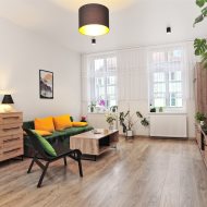 To przestronne mieszkanie o powierzchni 95,58 m² znajduje się w zabytkowej kamienicy z około 1920 roku.