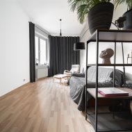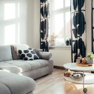 Za sprawą dużej ilości wysokich okien oraz ekspozycji względem stron świata mieszkanie jest bardzo słoneczne. Dzięki sporej odległości od pozostałej zabudowy mieszkalnej nie mamy sąsiadów, którzy zaglądają nam w okna.
