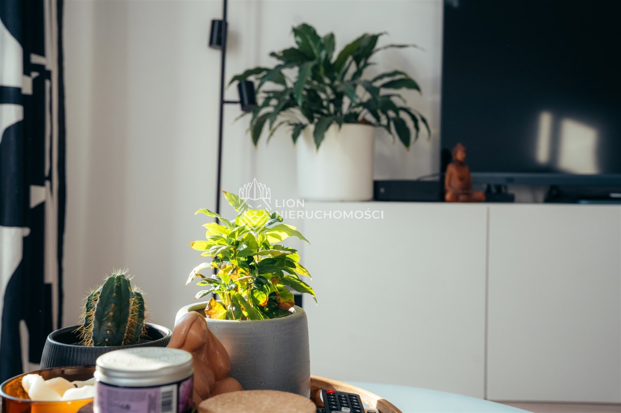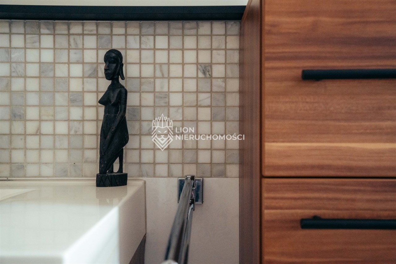 Wysoko, duże poczucie przestrzeni, dużo słońca. Przytulna sypialnia z głęboką wykładziną, zabudową oraz łóżkiem. Salon z jadalnią, częścią wypoczynkową oraz wyjściem na duży balkon. Trzeci pokój stanowi pracownia - ten pokój posiada drugą, prywatną łazienkę. Kuchnia z szerokim blatem oraz barkiem. Łazienka główna z dużą wanną. Widny oraz szeroki przedpokój.