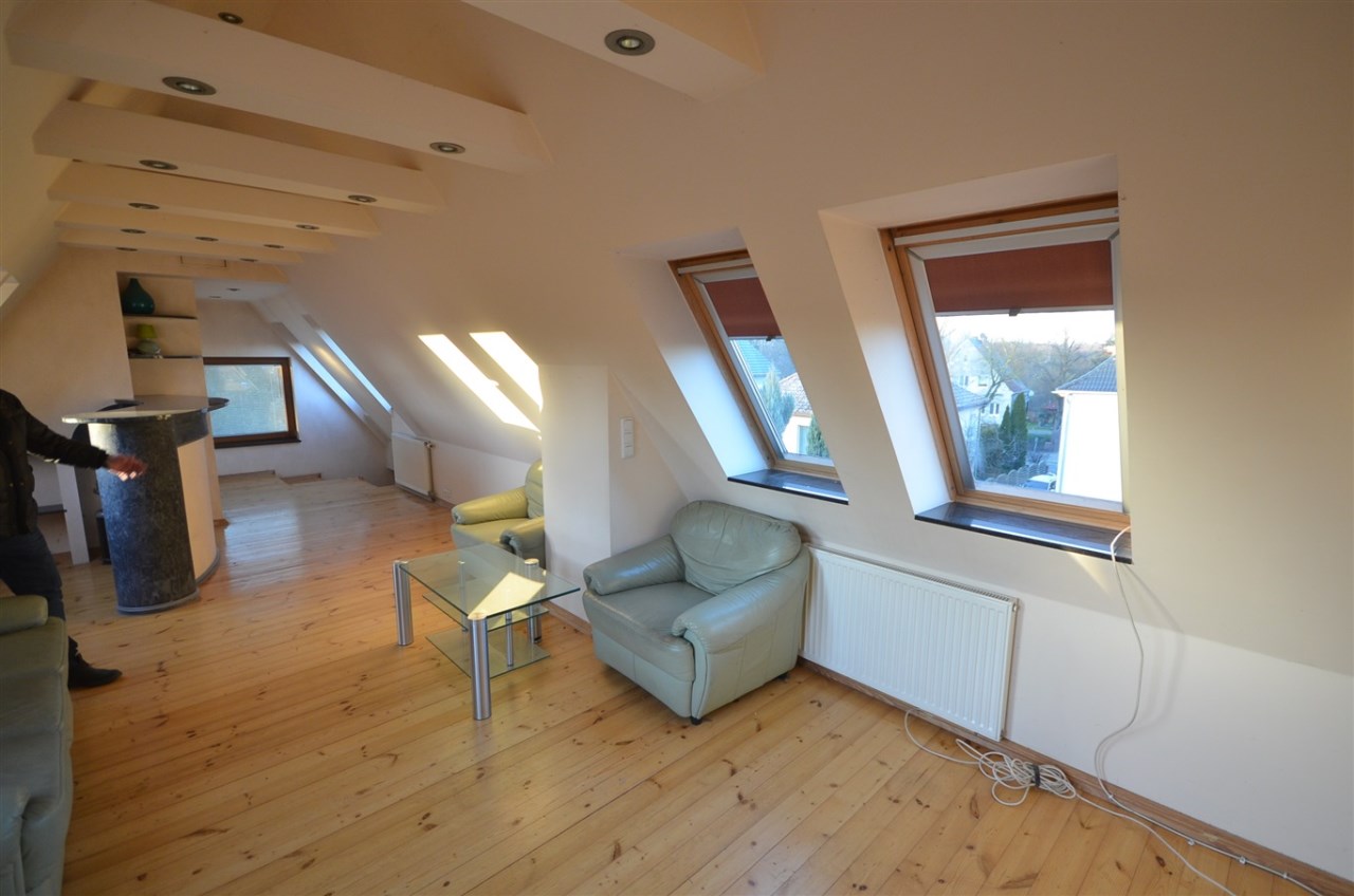 Mieszkanie dwupoziomowe w domku wolnostojącym dwurodzinnym w Dąbiu bezczynszowe w okolicy plaży miejskiej. Mieszkanie znajduje się na pierwszym piętrze i poddaszu ; na niższym poziomie znajduja się trzy pokoje , kuchnia z jadalnią zabudowaną meblami na wymiar i wyposażoną , łazienka razem z wc . Poddasze zaadaptowane i wykończone - jeden duży otwarty salon z barem wyposażonym w media oraz łazienka razem z wc. Do części domu należy 300m2 ogrodu na którym stoją dwa garaże ; 70m2 murowany na dwa samochody i blaszany na jeden samochód . Do nieruchomości przynależy część podpiwniczenia w którym znajduje się piec gazowy . . Dom ocieplony w dobrym stanie technicznym , dachówka ceramiczna . Bardzo ciche i spokojne miejsce Dąbia Istnieje możliwość zakupu dodatkowo ok. 600m2 gruntu.