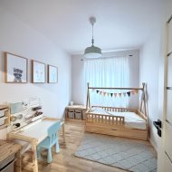 Pokój dziecięcy z oknem od strony zachodniej i widokiem na ogródek.