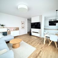 Mieszkanie w pełni zaprojektowane przez architekta wnętrz, z naciskiem na funkcjonalność i ergonomię. Wnętrze mieszkania jest niezwykle jasne, a taras zlokalizowany od zachodu jest perfekcyjnym miejscem na spędzanie letnich wieczorów na świeżym powietrzu.