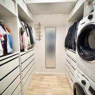 Garderoba z pralką i automatyczną suszarką oraz świetnie zaaranżowaną przestrzenią.