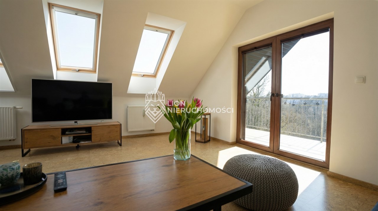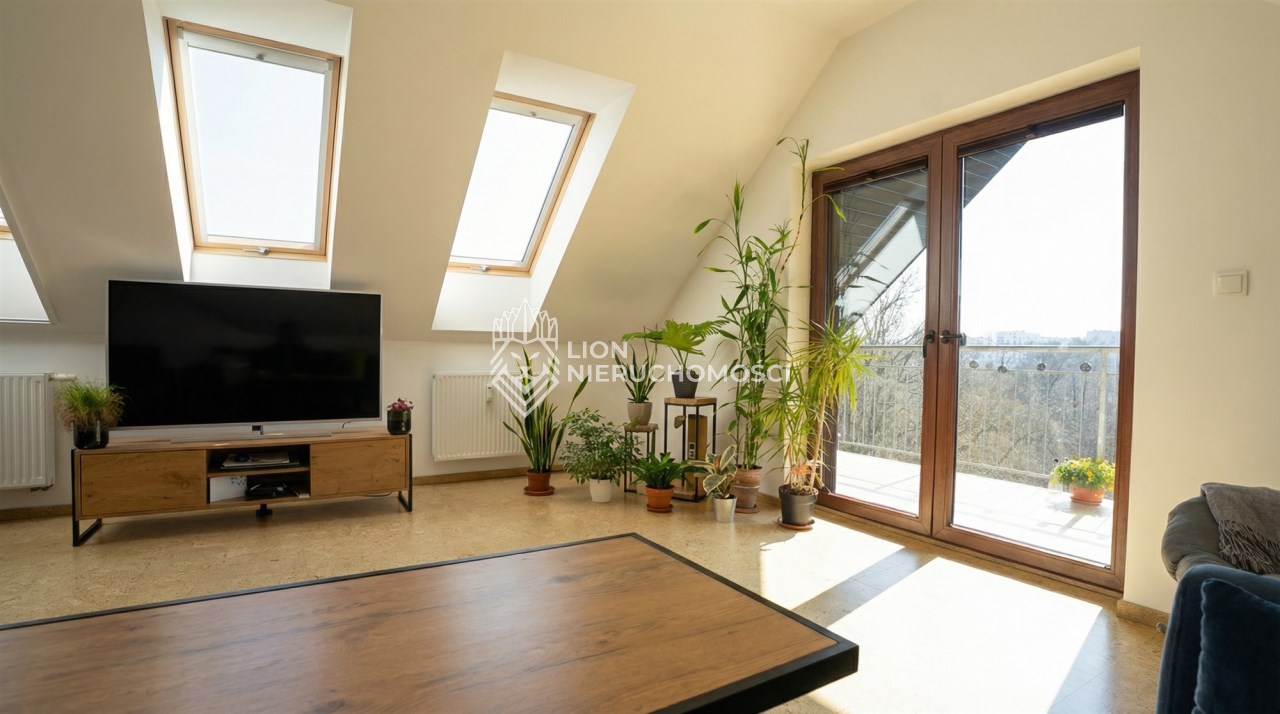 -salon ( 26,77m2 , użytkowej 17.30m2 z) z wyjściem na taras ( 9,85)