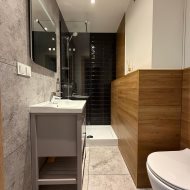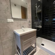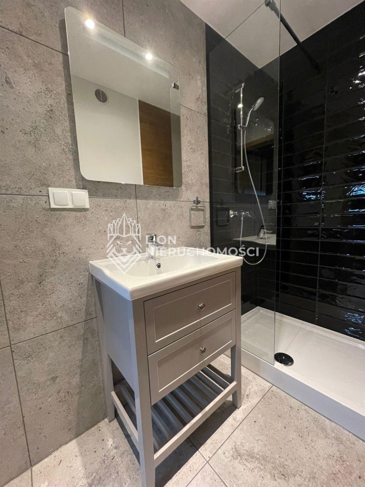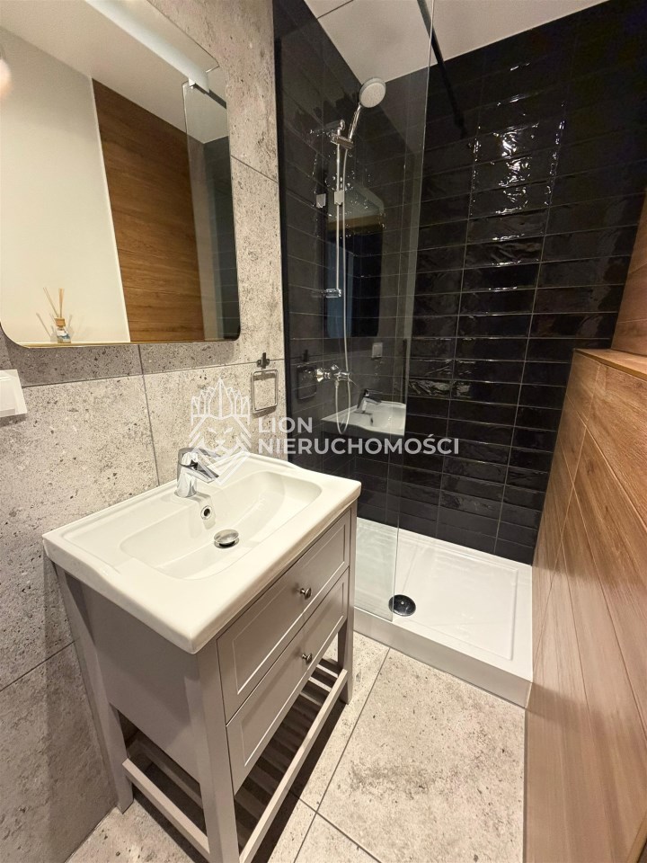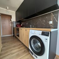 Jest duża szafa, szafka rtv, kanapa rozkładana z miejscem na pościel, kuchnia w zabudowie (płyta indukcyjna, piekarnik, zmywarka, pralka), w łazience dodatkowa szafka.