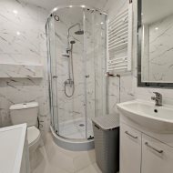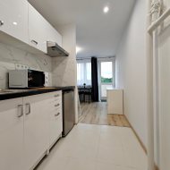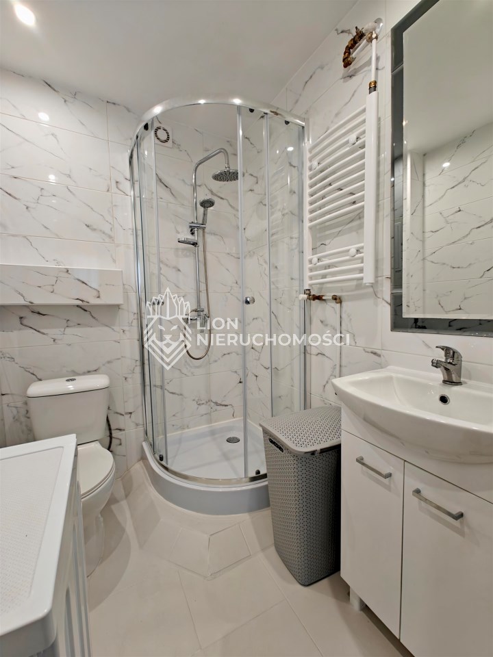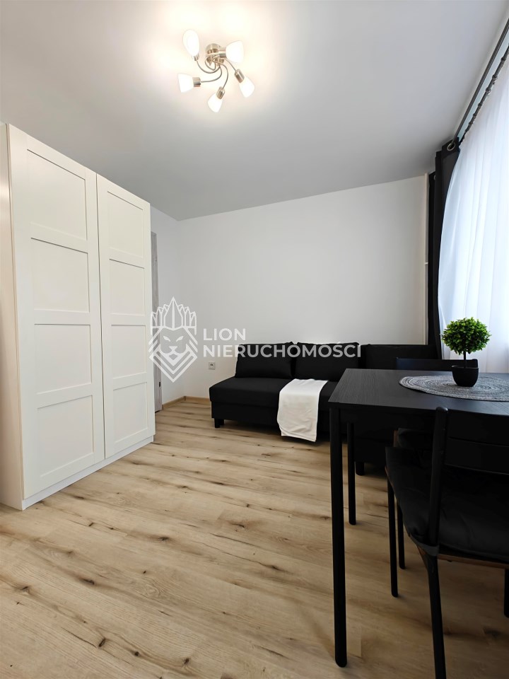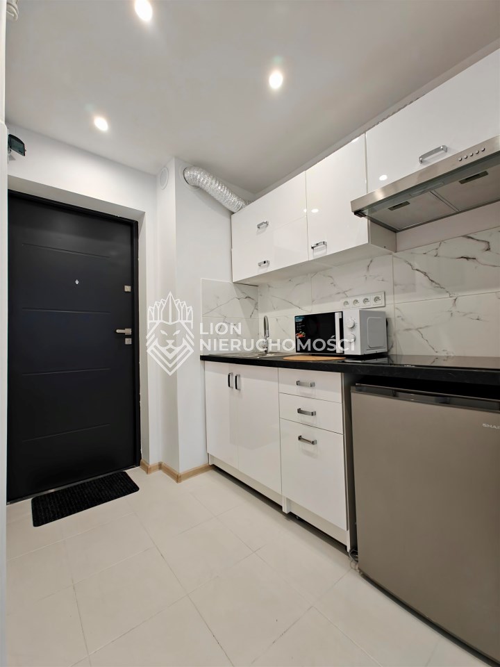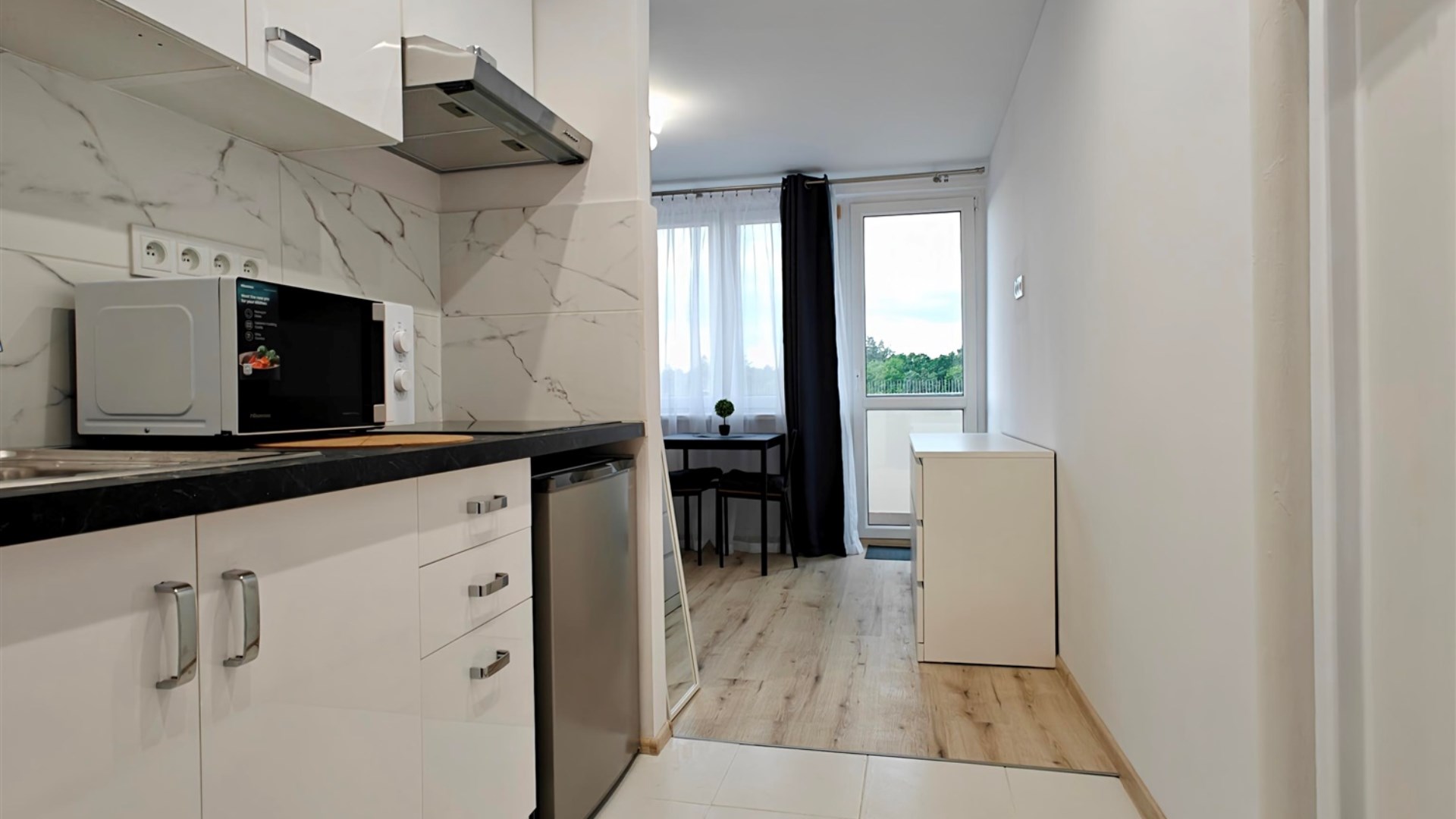 W skład mieszkania wchodzi aneks kuchenny połączony z pokojem dziennym z wyjściem na balkon, a także łazienka z prysznicem i WC. Całość została wykończona w wysokim standardzie – wszystko pachnie nowością!