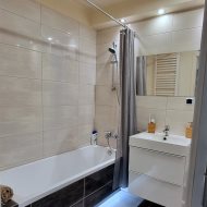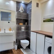 Lokal o pow. ok.56 m2 składa się: z obszernego salonu z wyjściem na balkon z bardzo ładnym widokiem, aneksu kuchennego z zabudową, sporej i wygodnej sypialni z dużą szafą, reprezentacyjnego przedpokoju oraz nowocześnie zaaranżowanej łazienki z WC w glazurze i terakocie z wanną oraz pralką.