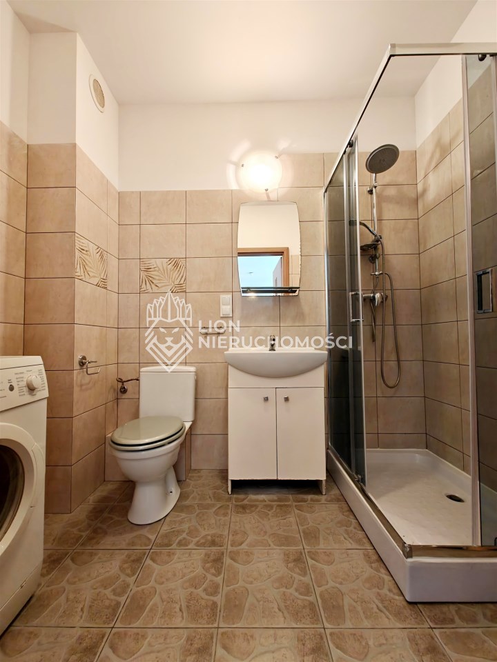 | Wyposażenie łazienki | kabina prysznicowa, lustro, pralka, umywalka na szafce, WC |