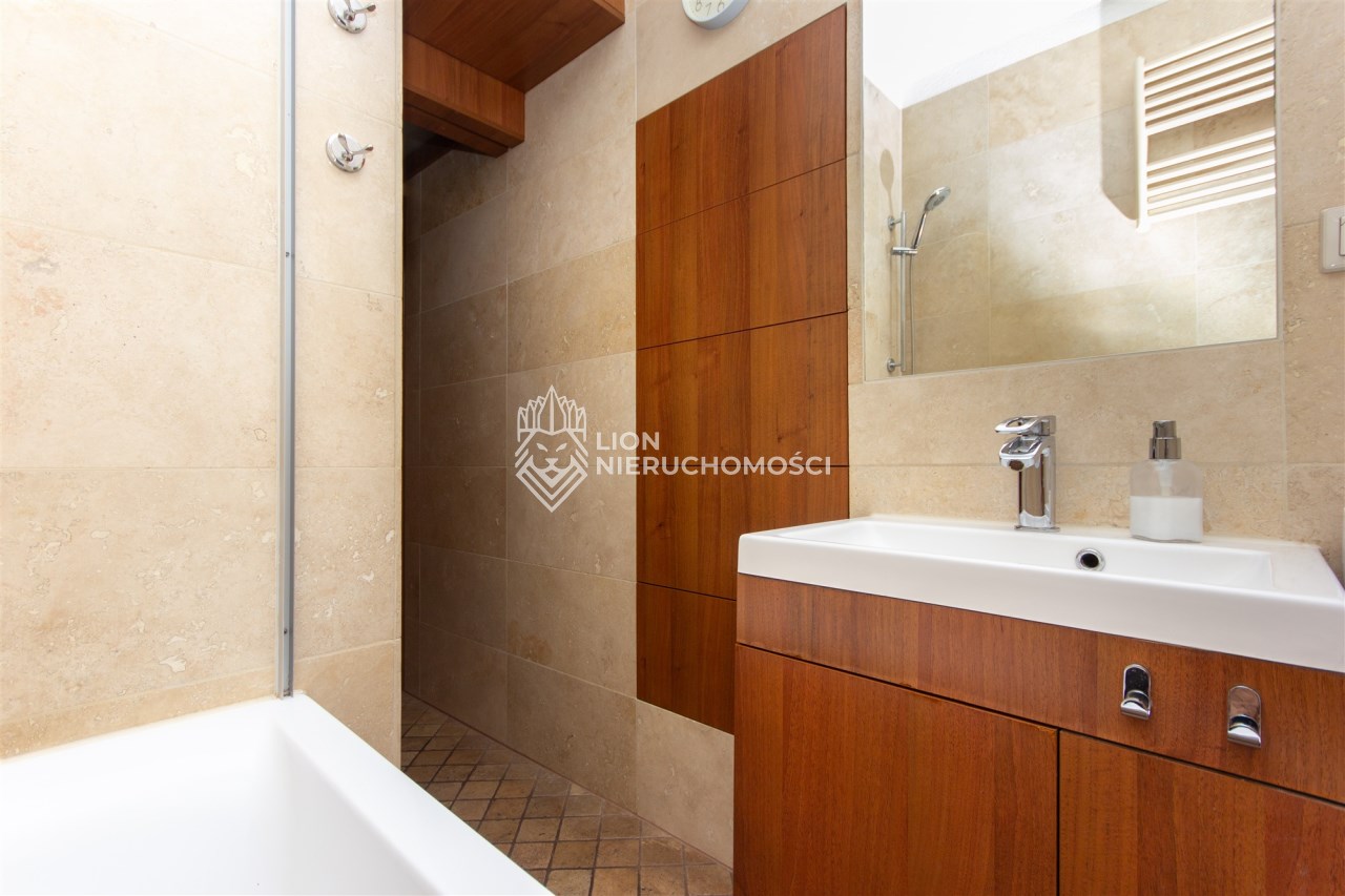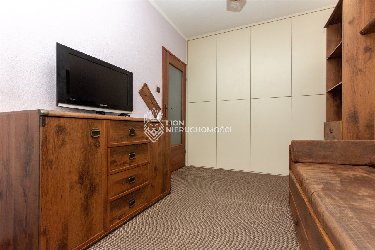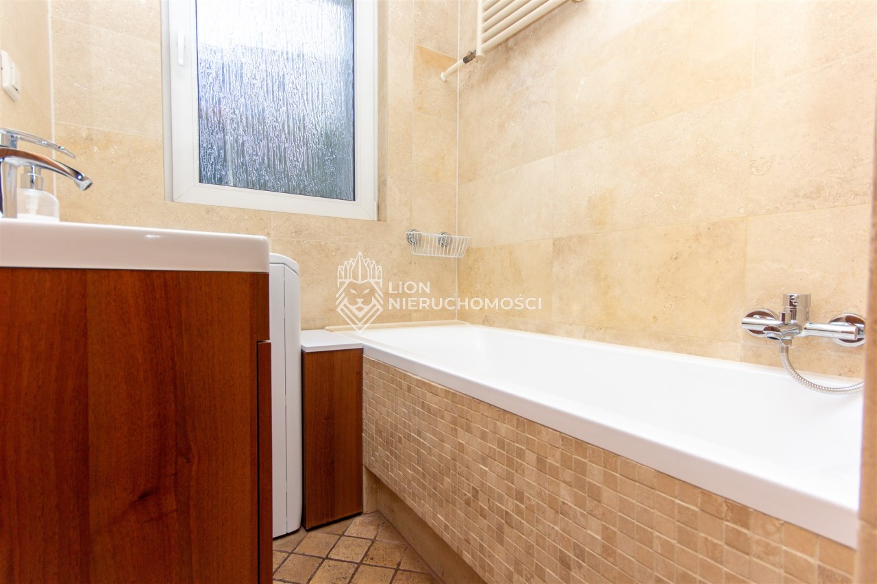 Kuchnia w pełni wyposażona: zmywarka, piekarnik, płyta gazowa, lodówka. W łazience znajduje się pralka. W salonie – duży narożnik i telewizor. Niewątpliwym atutem mieszkania jest sporo miejsca do przechowywania – praktyczne szafy i zabudowy meblowe.