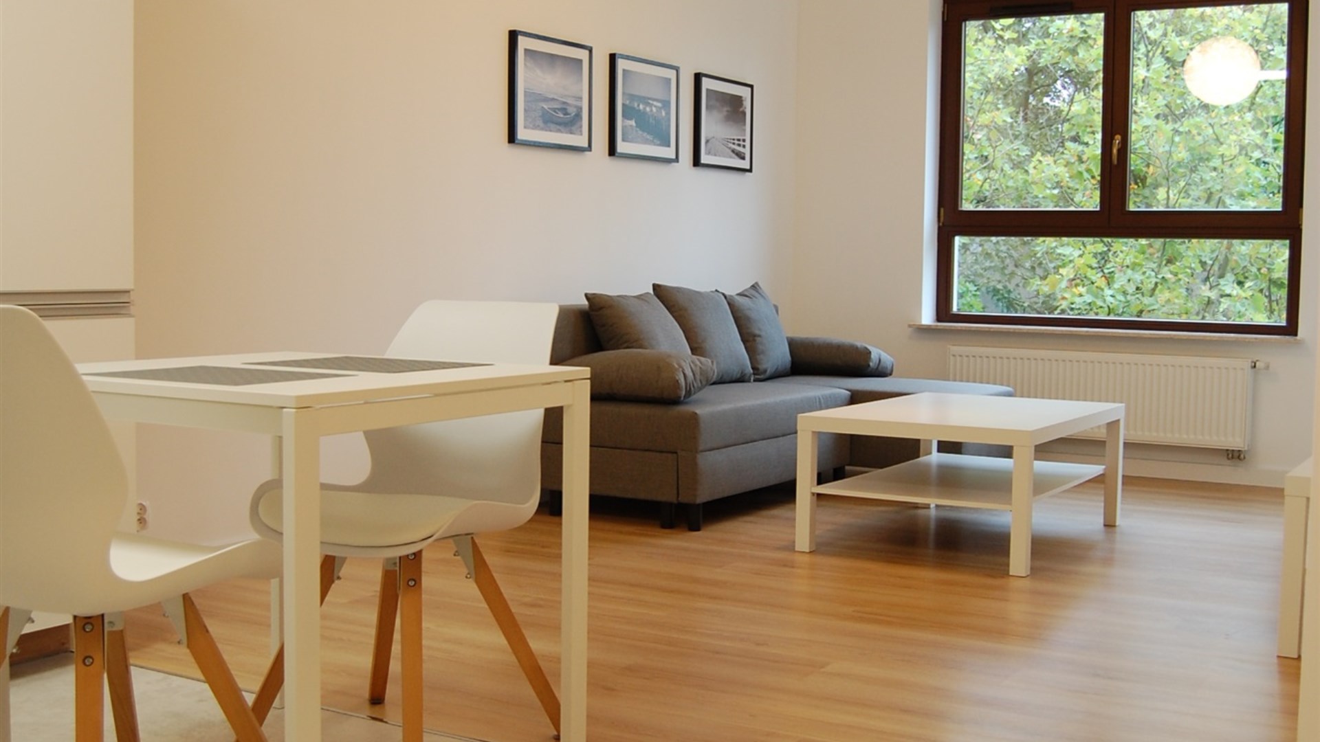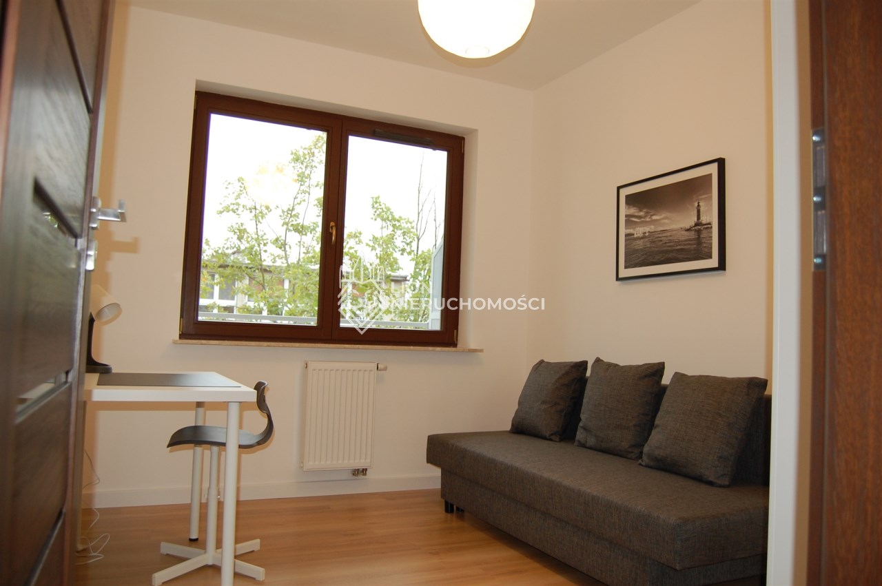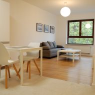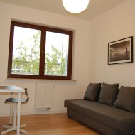 Mieszkanie 2 pokojowe zlokalizowane w nowym 4 piętrowego budynku z windą. Na powierzchnię mieszkania składa się salon z wyjściem na balkon Salon wyposażony w rozkładany tapczan , ławę . Sypialnia łóżko , biurko, krzesło biurowe.