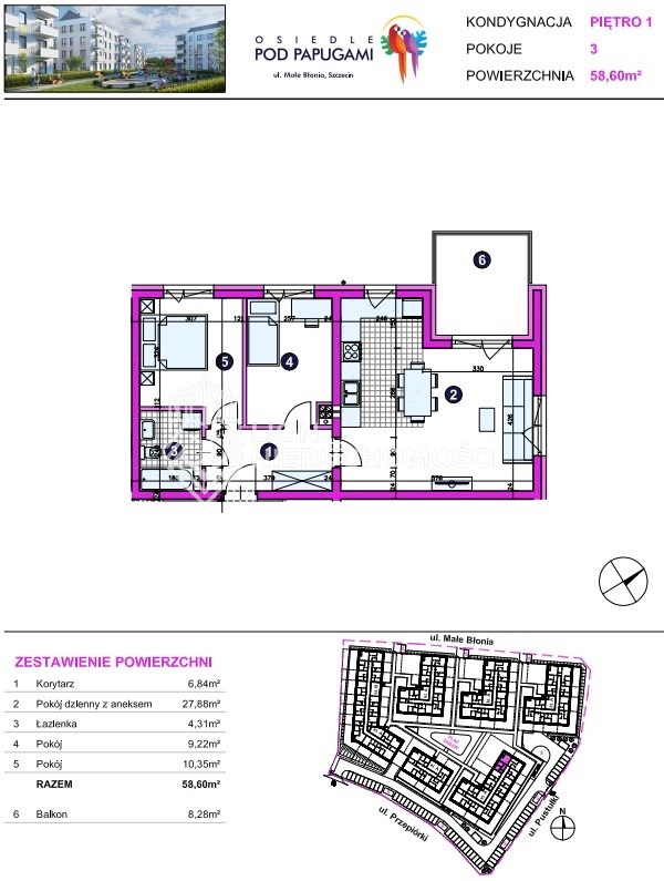 | Powierzchnia użytkowa [m2] | 58,60 m² |