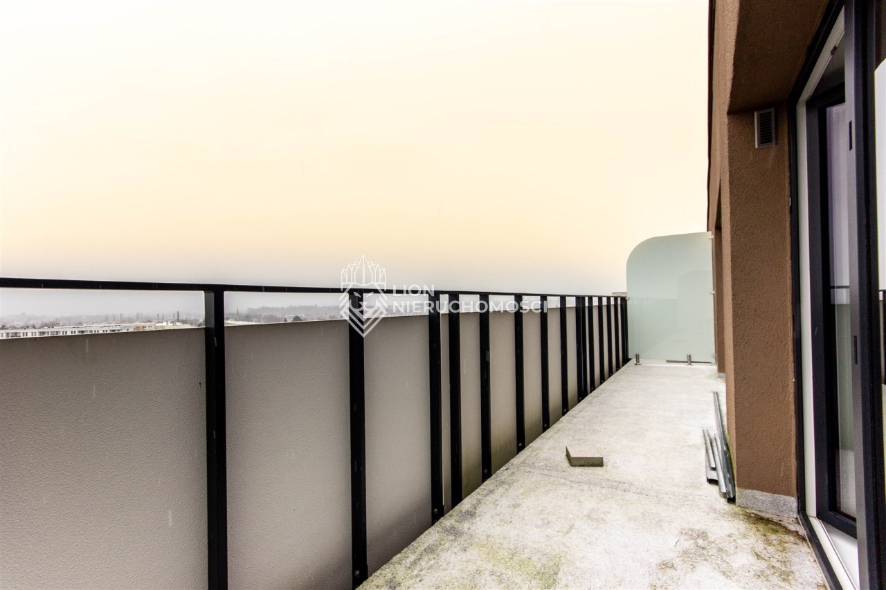 Na taras wyjście zarówno z salonu, jak i z sypialni. Z góry rozpościera się otwarta panorama miasta.