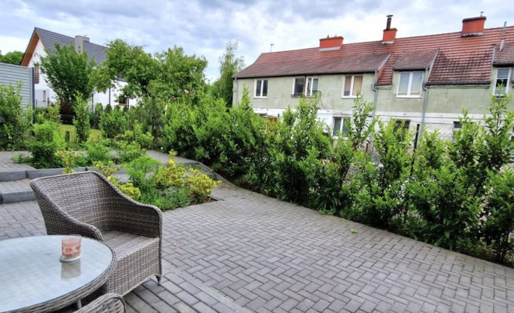 Trawnik, huśtawki dla 2x dzieci, liczne nasadzenia roślin, krzewy i drzewa owocowe, żywopłot, mini ogródek warzywny. Całość w pełni zagospodarowane. Ponadto w ogrodzie drewutnia z oświetleniem z przeznaczeniem na rowery, kosiarkę do trawy i grilla.