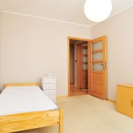 - Sypialnia (14m2) od strony wschodniej z dwoma oknami i widokiem na ogród przynależny do mieszkania. Pokój idealny dla 2 dzieci. Na podłodze wykładzina podłogowa. Łóżko 200x80. Szafki. Dużo biurko dla 2 osób.