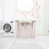 -łazienka z prysznicem, bidetem, toaletą, pralką w zabudowie