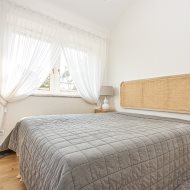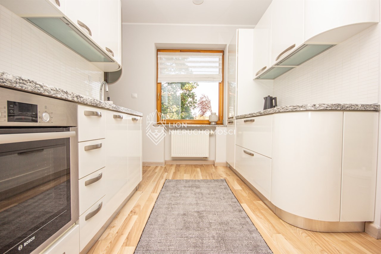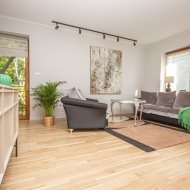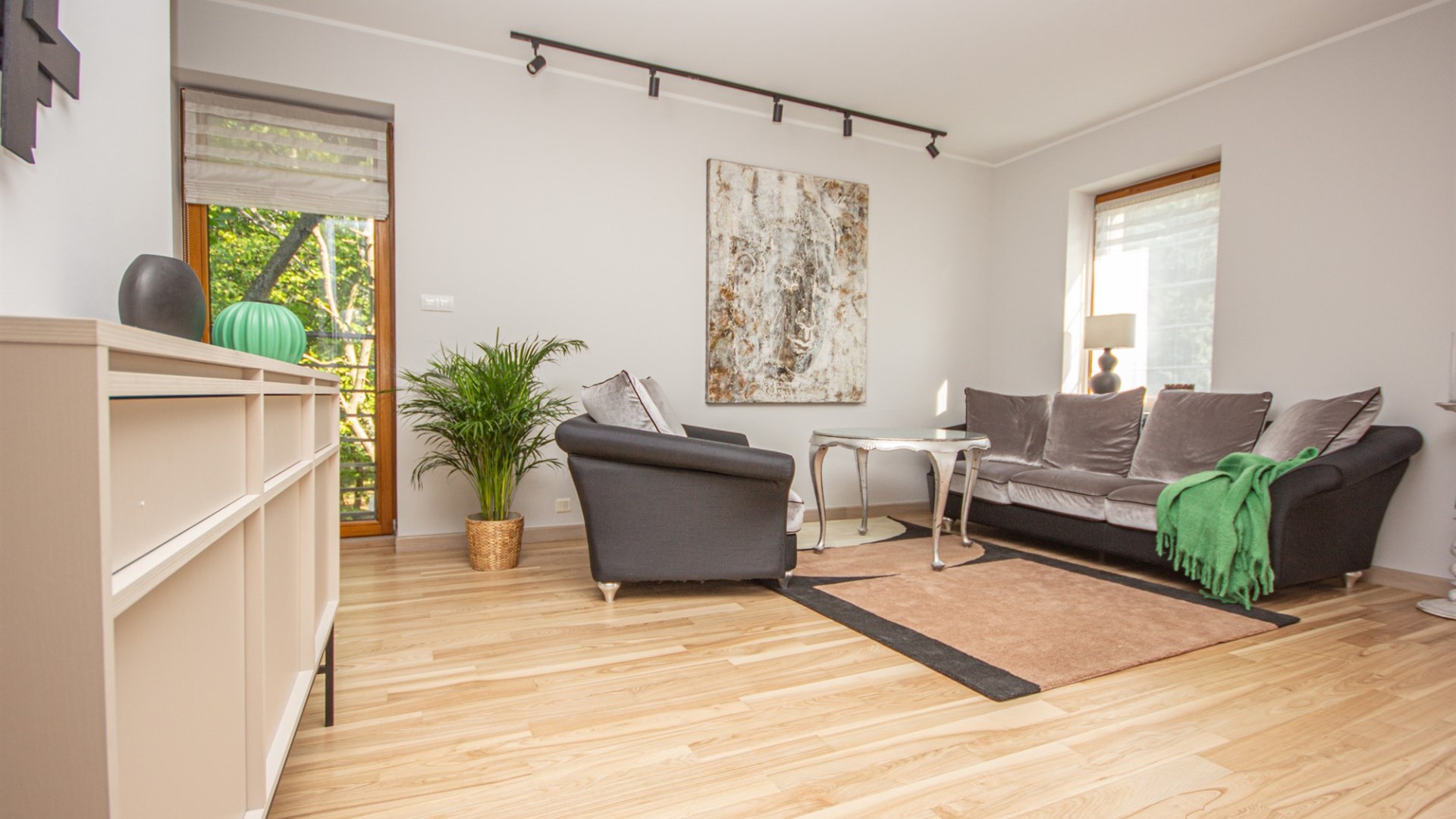Zostało urządzone z najwyższej jakości materiałów z gustem i dbałością o detale – drewniane podłogi, wełniane dywany, kamień naturalny w kuchni i łazience, designerskie oświetlenie i dodatki.