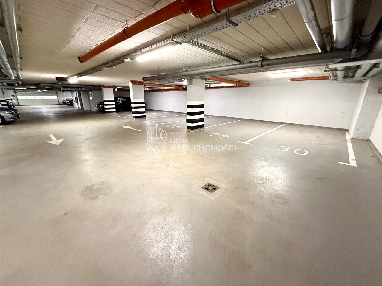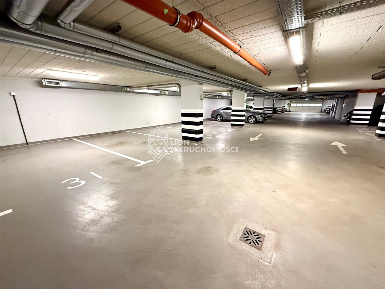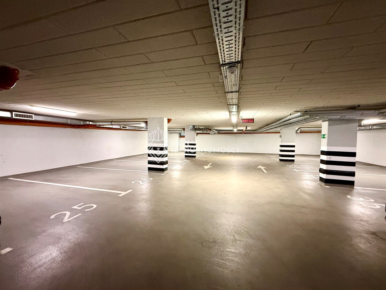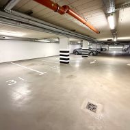 Miejsca parkingowe w hali garażowej graniczą ze sobą. Położone są w nowym budynku z 2025 roku przy ul. Powstańców Śląskich w Szczecinie.