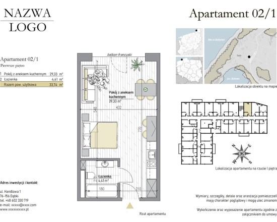 1 Pokoje 34 m2 20 500,00 zł/m2